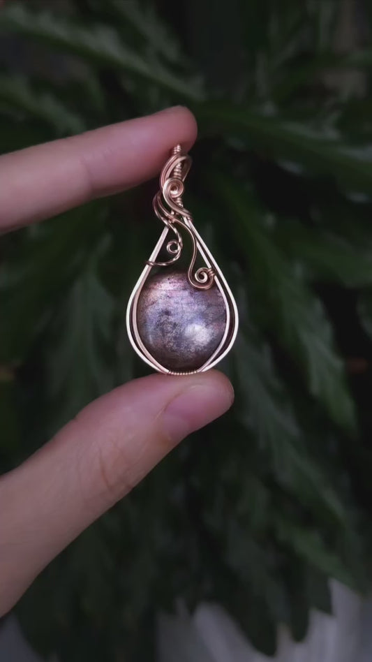 Purple haze zonnesteen 14k rose goldfill wire wrap hanger