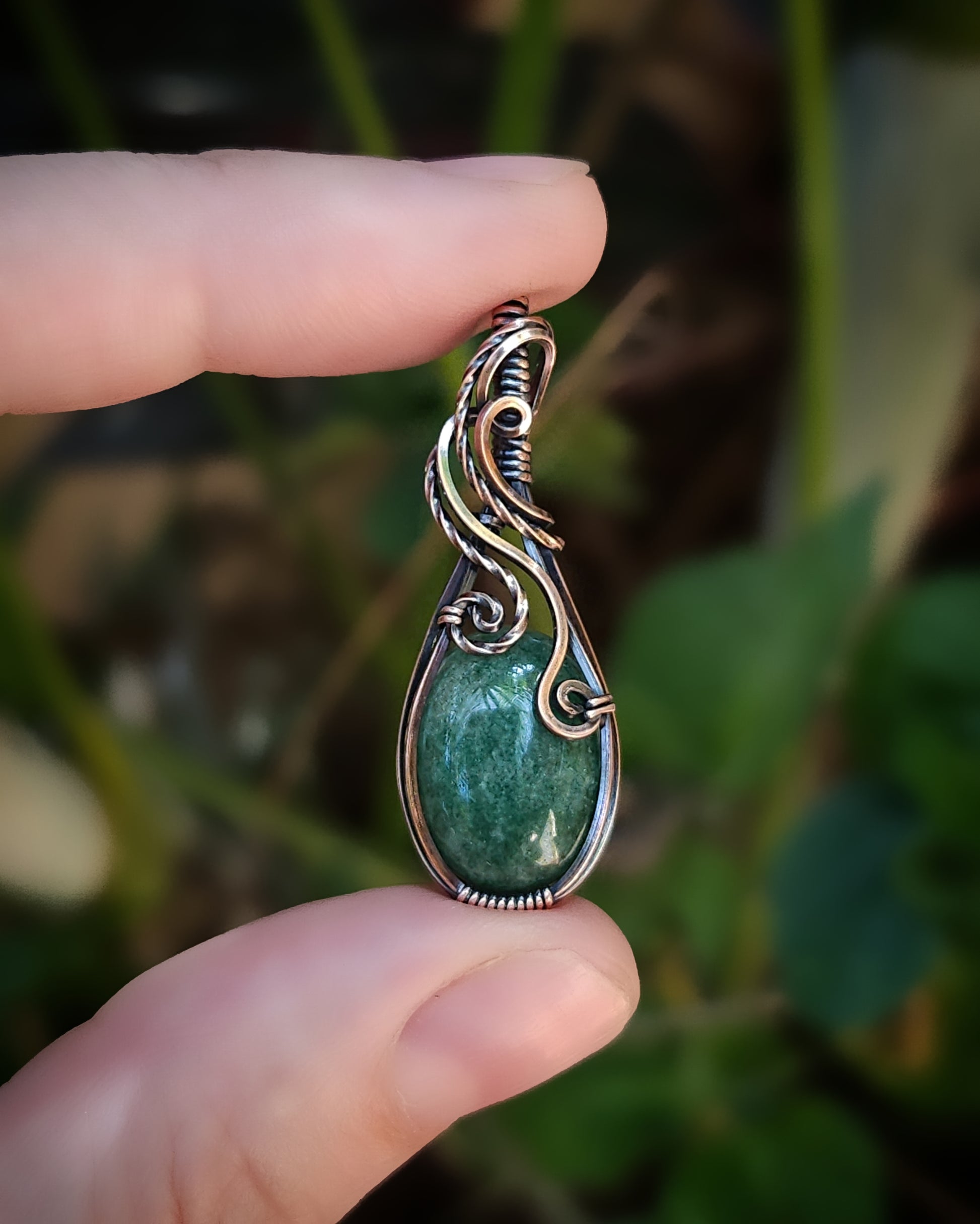 Aventurijn antiek koper wire wrap hanger