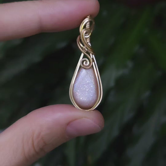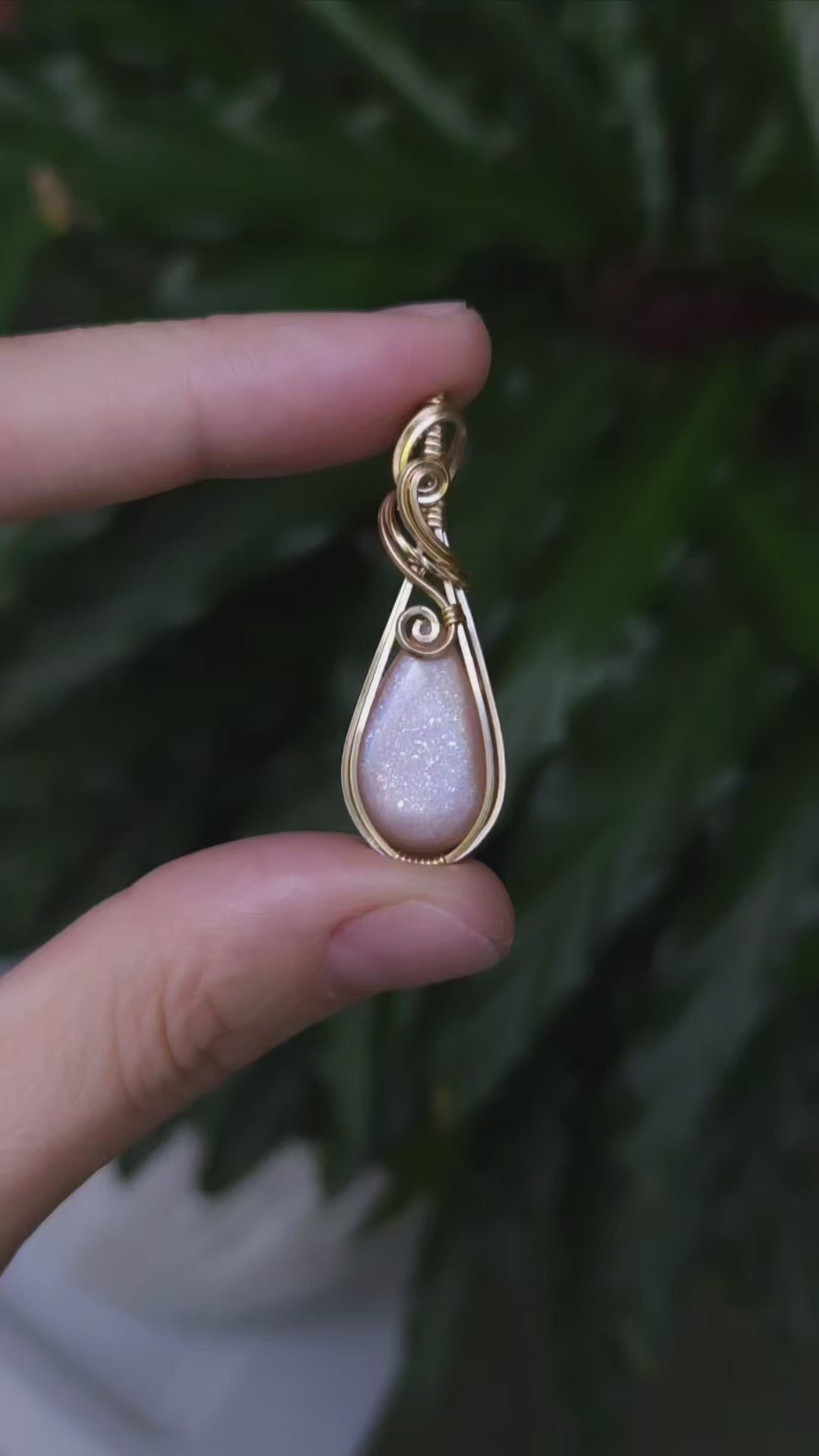 Gewikkeld in een swirly design met 14k goldfill draad.