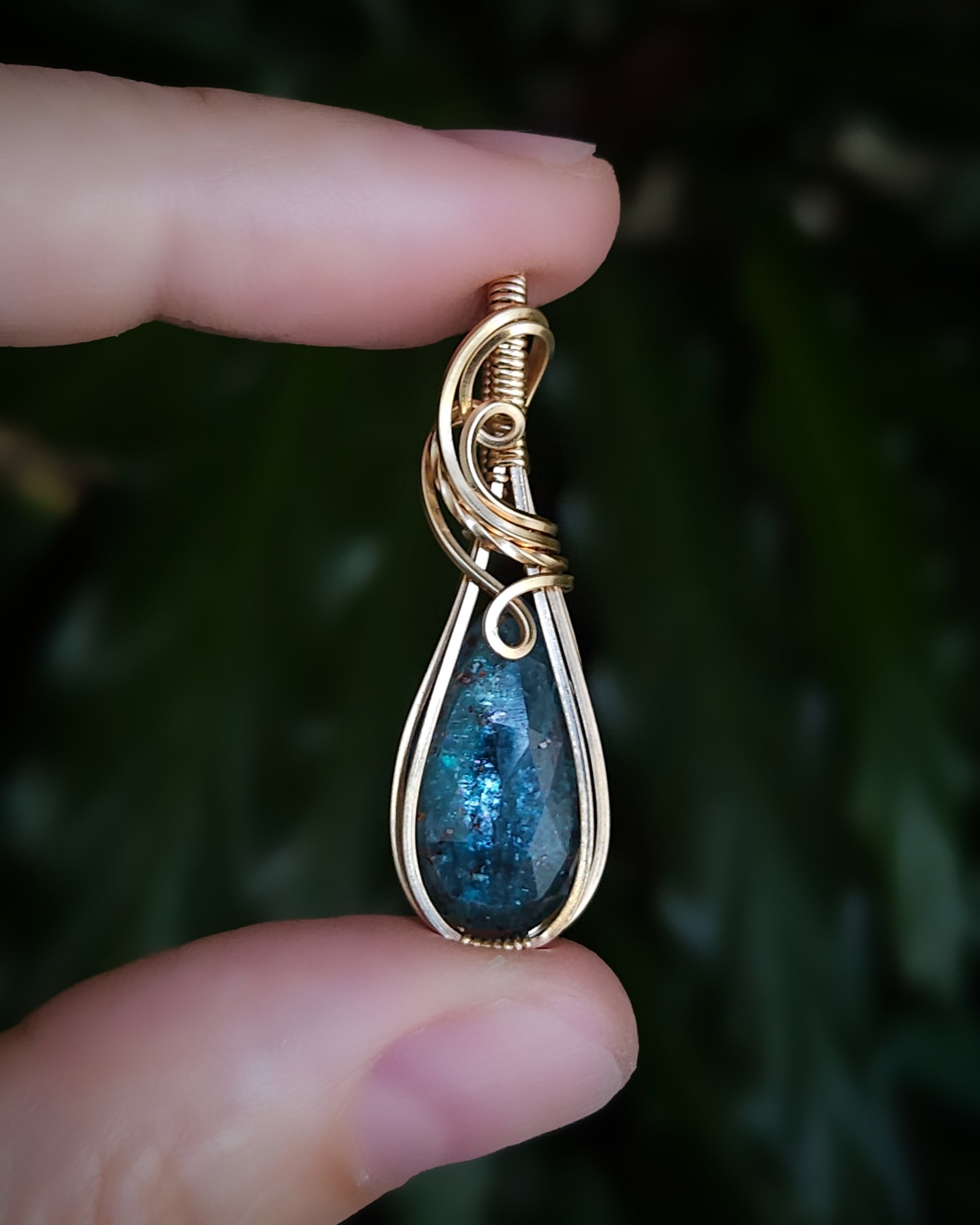 Voor Diana (met 25€ gift-card) Rose-cut kyaniet 14k goldfill wire wrap hanger