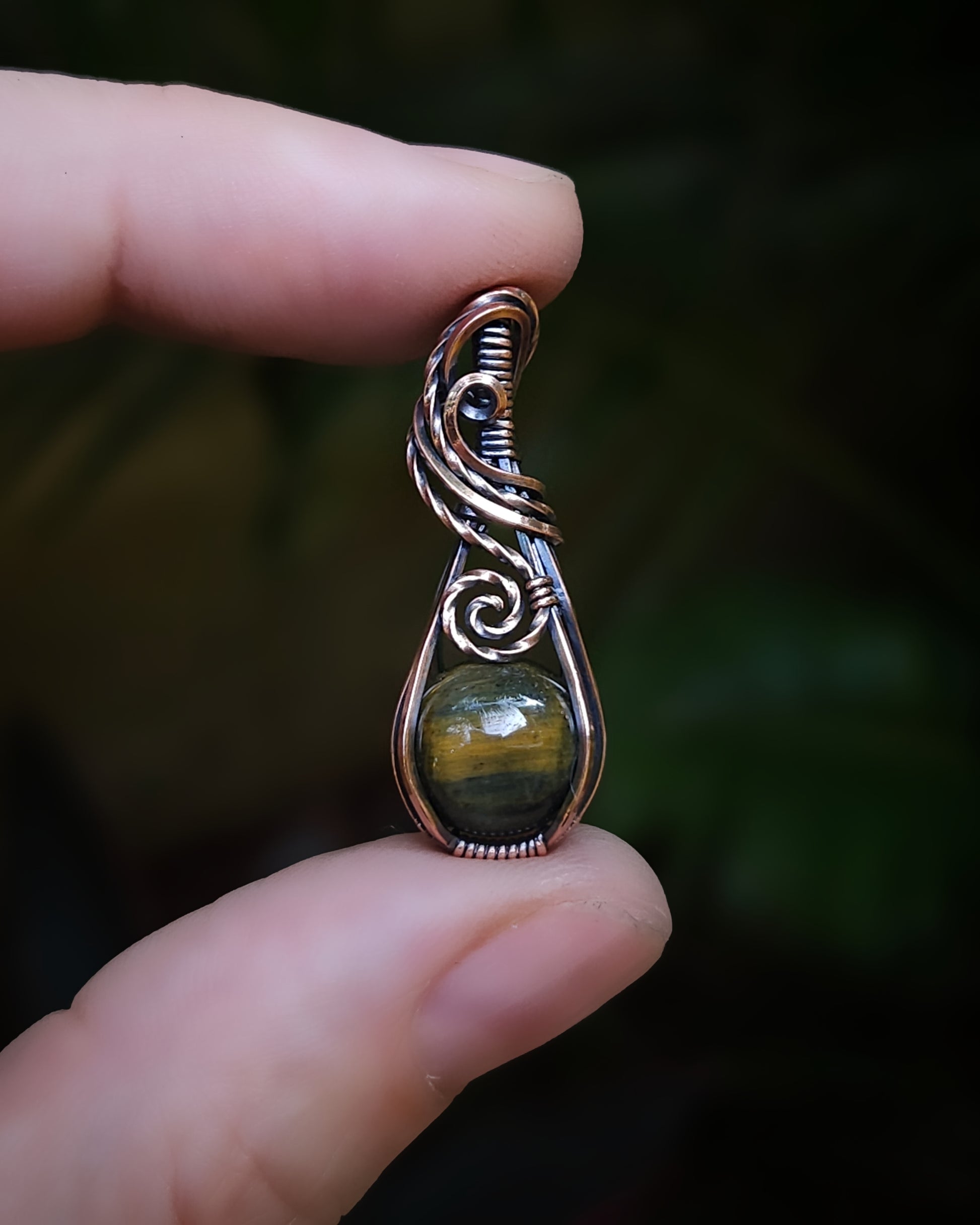 Tijgeroog steen antiek koper wire wrap hanger