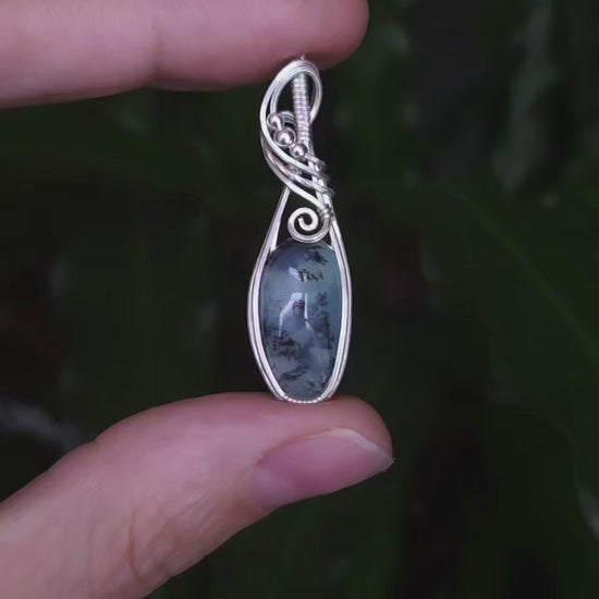 Blauwe Peruaanse Andes opaal 925 sterling zilver wire wrap hanger