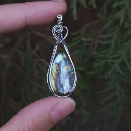 Regenboog labradoriet antiek 925 sterling zilver wire wrap